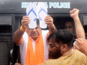कोलकाता के साउथ कलकत्ता लॉ कॉलेज में गैंगरेप की घटना के खिलाफ भाजपा नेताओं ने शनिवार को जोरदार प्रदर्शन किया। इस दौरान केंद्रीय मंत्री और पश्चिम बंगाल भाजपा अध्यक्ष सुकांत मजूमदार को पुलिस ने हिरासत में ले लिया। मजूमदार ने कहा, ‘यह पश्चिम बंगाल में लोकतंत्र का चेहरा है। ममता बनर्जी ने राज्य में लोकतंत्र को बर्बाद कर दिया है। पुलिस ने मुझे और अन्य कार्यकर्ताओं को गिरफ्तार कर लिया है।’ न्यूज एजेंसी एएनआई से सुकांत मजूमदार को हिरासत में लिए जाने का वीडियो क्लिप जारी किया है। इसमें भाजपा नेता को पुलिस की ओर से गाड़ी में ले जाते देखा जा सकता है। इस दौरान बीजेपी समर्थक पश्चिम बंगाल की ममता बनर्जी सरकार के खिलाफ नारेबाजी कर रहे हैं।