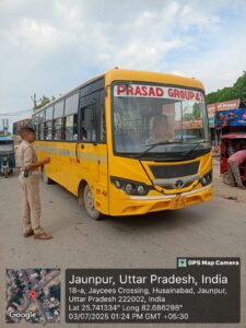 यातायात विभाग व परिवहन विभाग के संयुक्त टीम बनाकर दिनांकः03.07.2025 को जौनपुर में स्कूली बसो के विरुद्ध विशेष सघन चेकिंग अभियान चलाया गया, जिसमें मानक के अनुरुप बसों के खिड़की, जाली, आपातकालीन द्वार की स्थिति, वाहन का रख- रखाव, यातायात नियमों के पालन, वाहन के समस्त प्रपत्र जैसे-आर0सी0, फिटनेस, बिमा, ड्राइवर का डी0एल0 तथा सीट से अधिक बच्चे तो नही बैठाये गये है, की जाँच की गयी । जिसमें इनके विरुद्ध प्रवर्तन की कार्यवाही करते हुए 182 वाहनों को चेक किया गया जिसमें 34 वाहन का चालान व 02 वाहन के विरुद्ध सीज की कार्यवाही की गयी ।