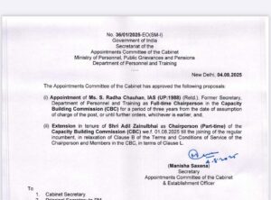 New Delhi. UP कैडर की रिटायर्ड IAS राधा चौहान कैपेसिटी बिल्डिंग आयोग (CBC) की चेयरपर्सन बनायी गयीं…