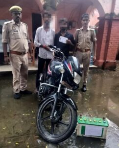 थाना जलालपुर पुलिस टीम द्वारा चोरी की घटना सफल अनावरण करते हुए 02 अभियुक्तों को किया गया गिरफ्तार, कब्जे से 01 बैटरी सहित चोरी के सामान का विक्रय कर प्राप्त 3000 रु0 नगद व घटना में प्रयुक्त मो0सा0 बरामद-