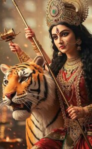 अर्थ: यह मंत्र माँ चंद्रघंटा के स्वरूप का वर्णन करता है, जो सिंह पर विराजमान हैं, जिनके पास क्रूरता दिखाने वाली शक्तियाँ और शास्त्र हैं, और जो भक्तों को प्रसाद (कृपा) प्रदान करती हैं.