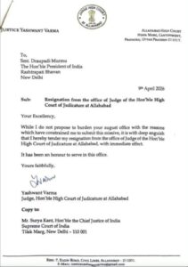 इलाहाबाद हाईकोर्ट के जस्टिस यशवंत वर्मा ने इस्तीफ़ा दिया